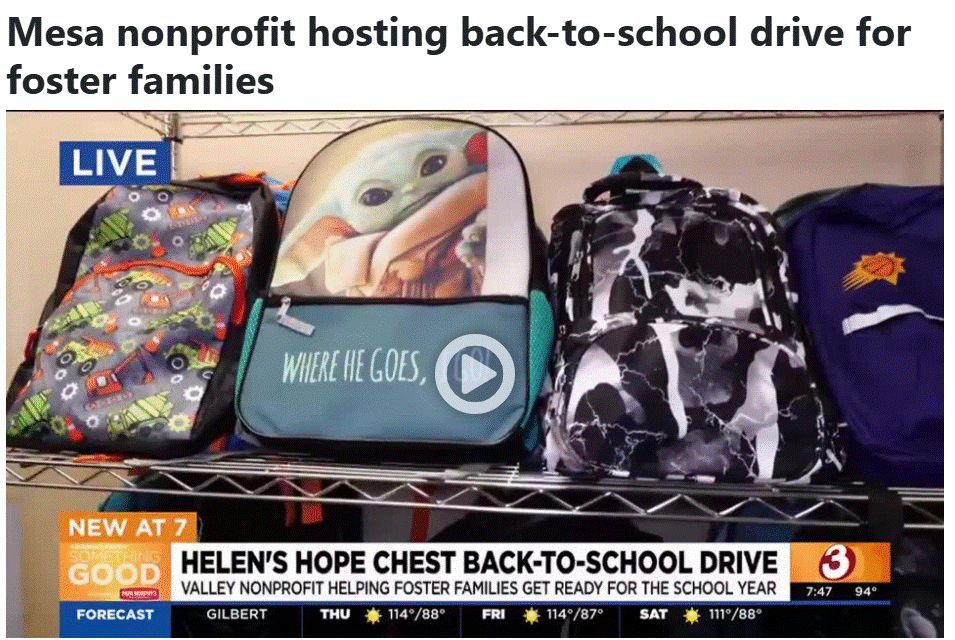 Arizona’s Family Report on Helen’s Hope Chest Back to School Drive July 2024